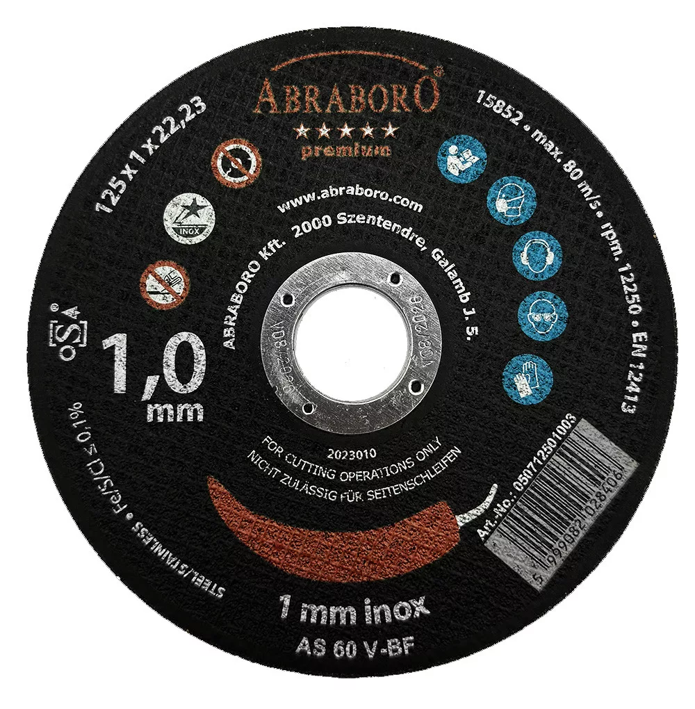 Az ABRABORO CHILI PREMIUM fémvágó korong, inox ø 115 x 1,0 x 22,23 T41 vékony, 1,0 mm-es kivitelének köszönhetően gyors, pontos vágást biztosít rozsdamentes acélon és más fémanyagokon. A 115 mm-es átmérő és a 22,23 mm-es furatméret a legtöbb szabványos sarokcsiszolóval kompatibilis. Kialakítása csökkenti a sorjaképződést, így kevesebb utólagos megmunkálást igényel, ami időt és energiát takarít meg a felhasználónak.