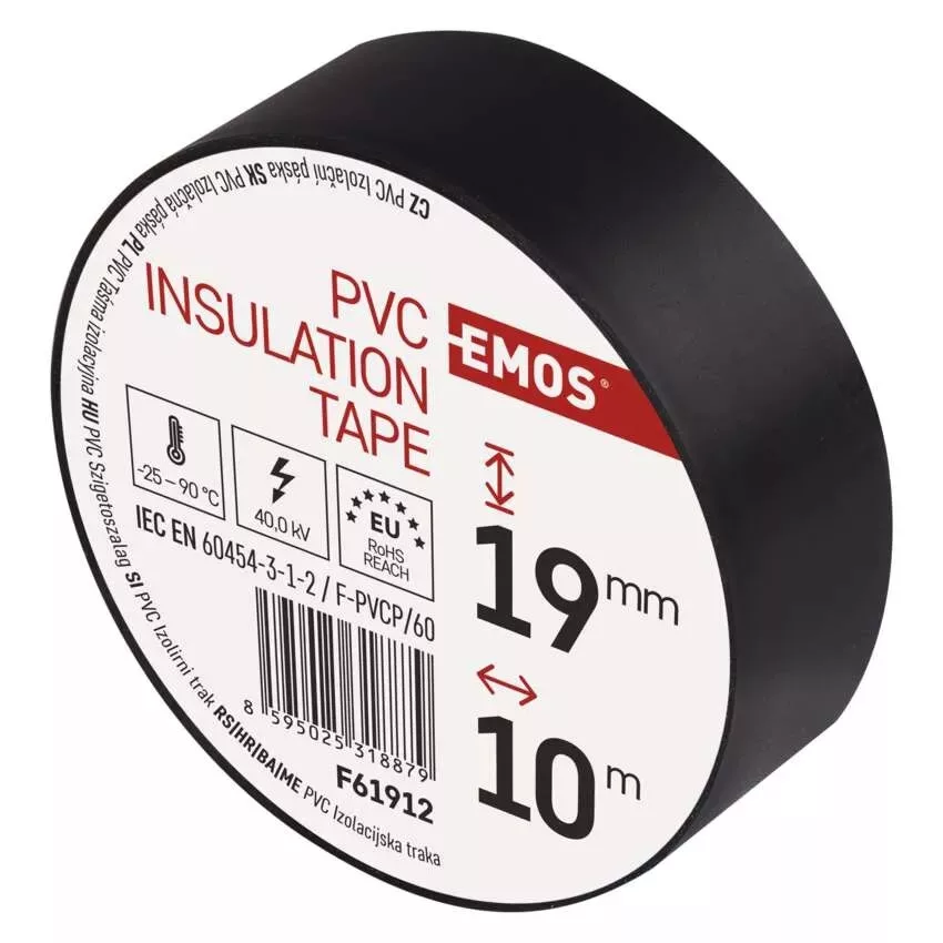 Az EMOS-F61912 fekete PVC szigetelőszalag 19 mm szélességével és 10 m hosszával megbízható választás elektromos kötések szigeteléséhez és kábelek jelöléséhez. Rugalmas anyaga könnyen formázható, jól tapad különféle felületeken, így precíz munkát tesz lehetővé.