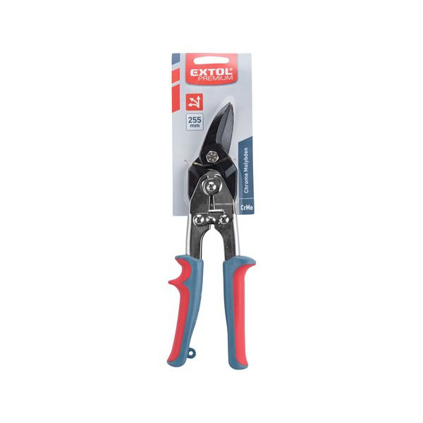 CrV acélból készült, kovácsolt pofák, indukciósan HRC 56-62 keménységre edzve. A lemezvágó olló markolat tengelye felé hajló pofái egyszerűbb és könnyebb vágást tesznek lehetővé. Az olló nagy ellenálló képességű markolatai automatikusan nyílnak az ergonómiai szempontból kedvező helyzetbe A max. vágási vastagság a lemezvágó olló esetében hidegen hengerelt acél esetében 1,2 mm, rozsdamentes acél esetében 0,8 mm.
