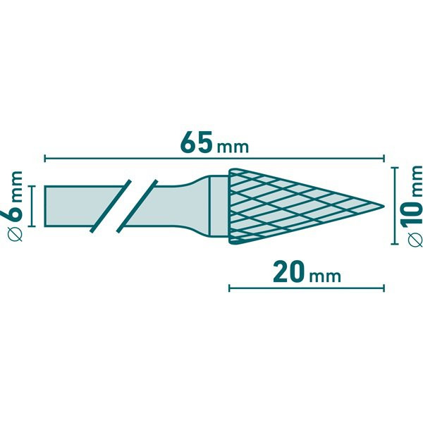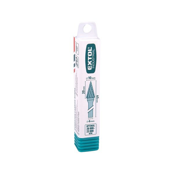 EXTOL 8703794 Keményfém turbómaró (rotormaró), kúpos, hegyes orrú, átmérő 10×20mm/szár 6mm, keresztfogazás