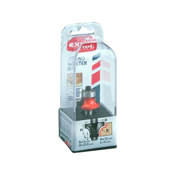 EXTOL 8802103 Felsőmaró fára, lekerekítő (homorúfejű rádiuszmaró), csapágyas, R3×D21,5×H12, befogás: 8mm, keményfém lapkás