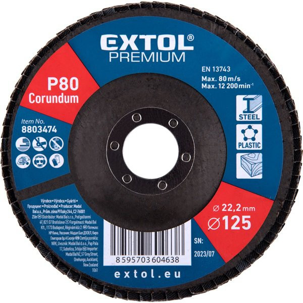 EXTOL 8803474 Lamellás csiszoló acél, Alu, műa. és fa munkadarabok csiszolására, 125×22mm; P80, kúpos, max.:12.300 ford./perc, EN13743