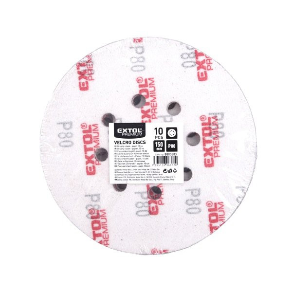EXTOL 8803585 Csiszolókorong vászon, lyukas klt. 10db, 150mm, 8 db lyukkal, P120-es, tépőzáras