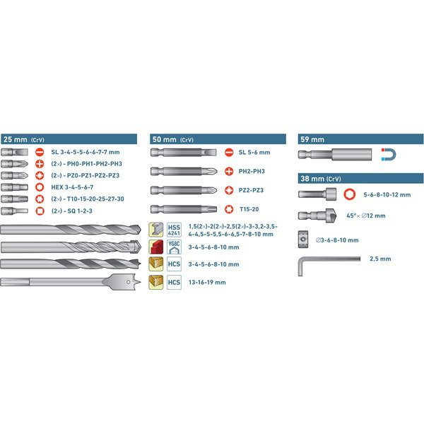 dugófejek (1/4"× 38 mm): 5-6-8-10-12 mm