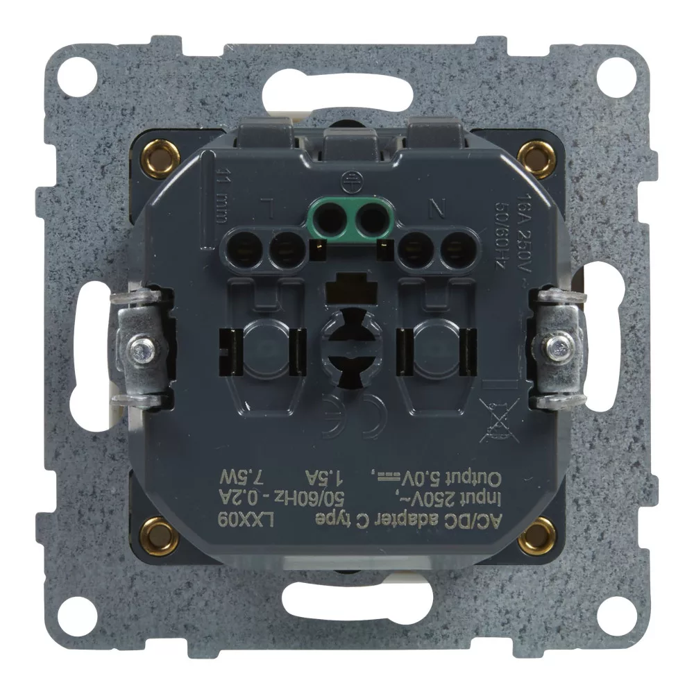 LEGRAND-721129 Suno 2P+F + USB-C csatlakozóaljzat (rugós), biztonsági zsaluval, fehér